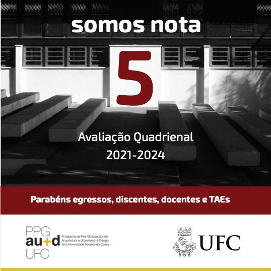 A coordenação do PPGAU+D tem a honra de divulgar que o nosso programa obteve nota 5 na última avaliação quadrienal da CAPES 2021-2024. Trata-se de um resultado positivo no rumo à consolidação do programa e ampliando as possibilidades de financiamento da pesquisa cientifica. Agradecemos o envolvimento de todo o corpo docente e discente pelo esforço e dedicação no último quadriênio e a todos aqueles que contribuiram para essa conquista.