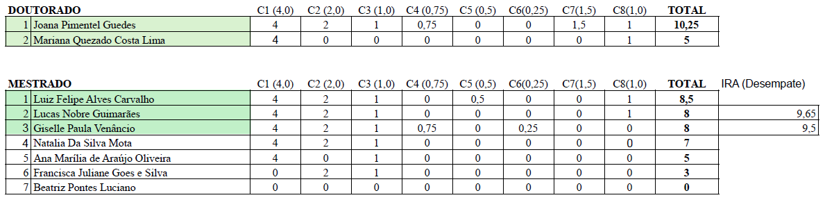Legenda: C1-8 – Critérios do Edital 01/2026 PPGAU+D